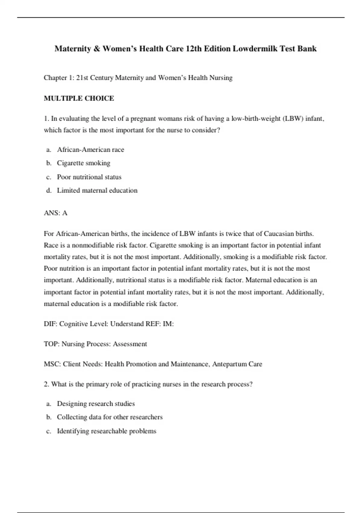 Test Bank For Maternity and Women's Health Care 12th Edition Lowdermilk Chapter1-37 | Complete Guide 2022
