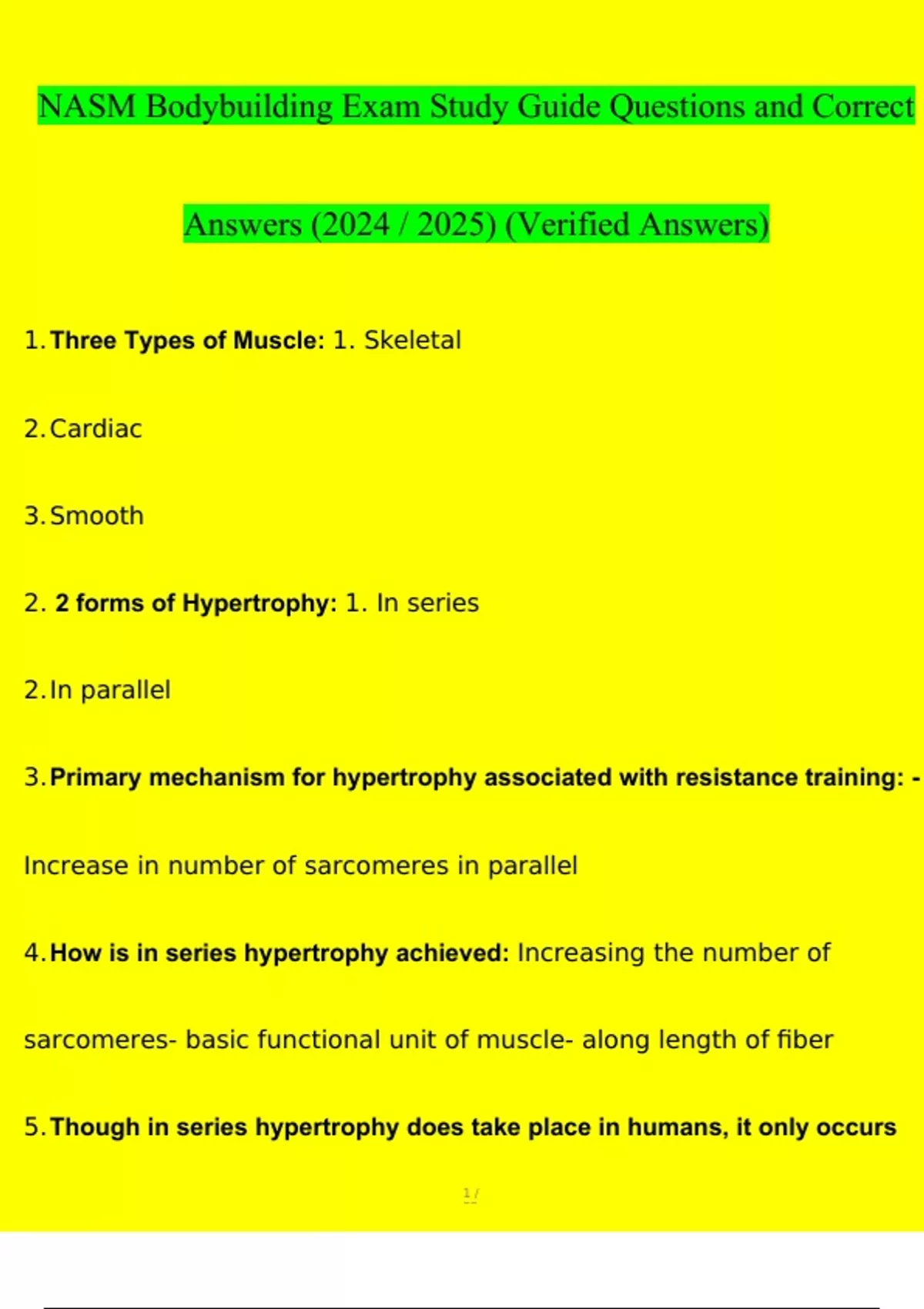 NASM Bodybuilding Exam Study Guide Questions and Answers (2024 / 2025)