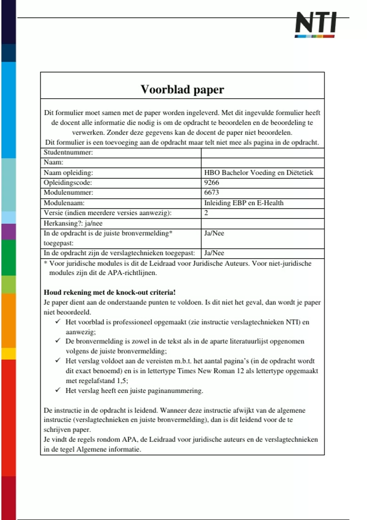 verwerken. Zonder deze gegevens kan de docent de paper niet beoordelen.