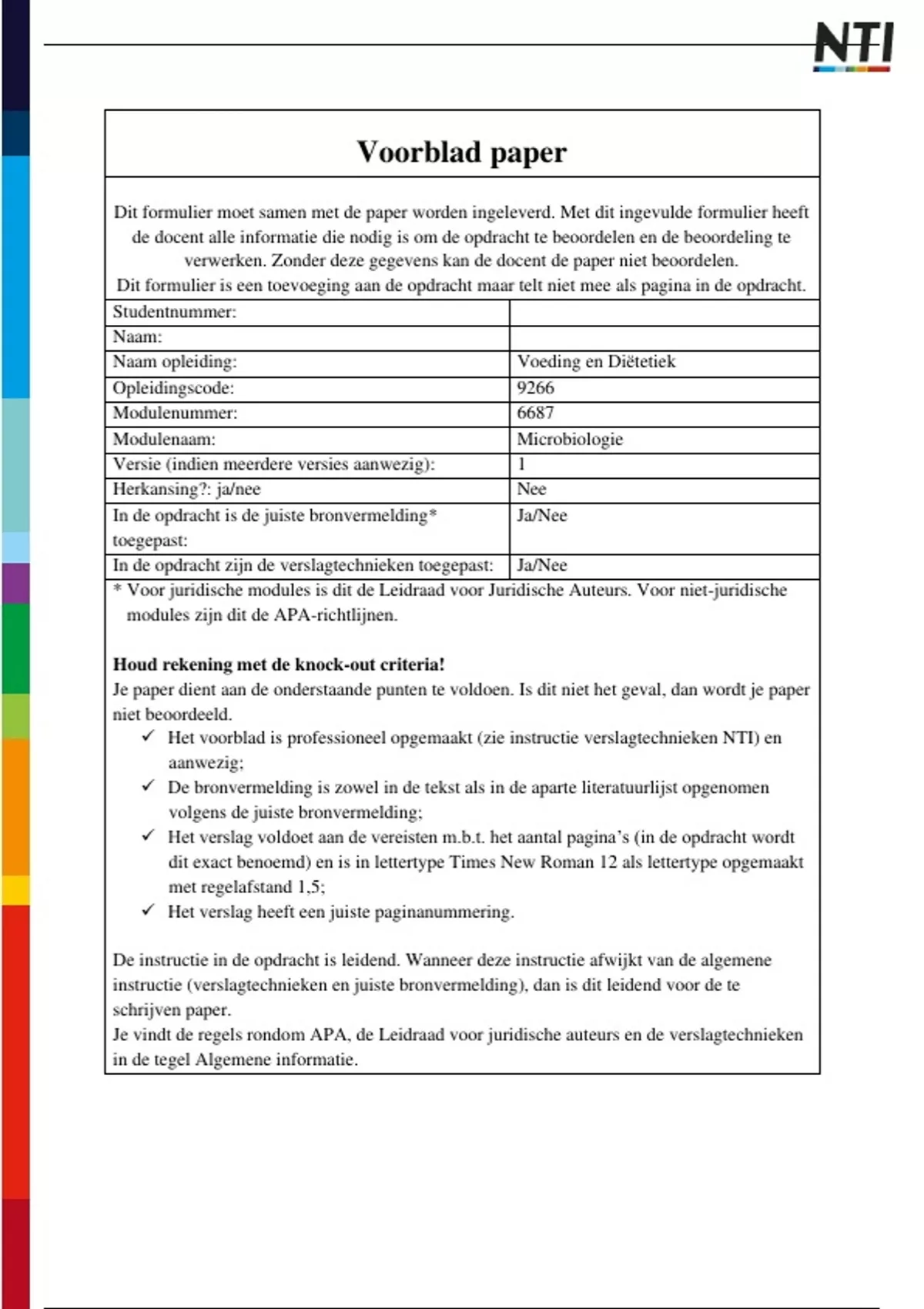 verwerken. Zonder deze gegevens kan de docent de paper niet beoordelen.