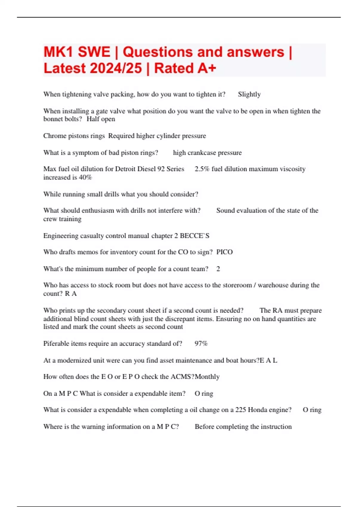 mk1 swe questions and answers latest 202425