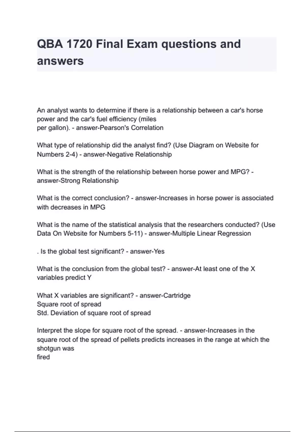 QBA 1720 Final Exam questions and answers 2024