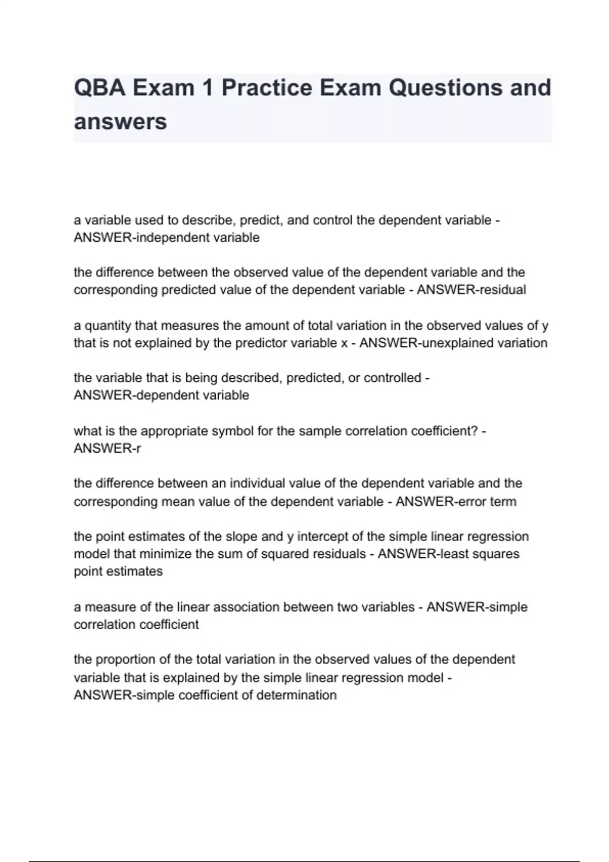 QBA Exam 1 Practice Exam Questions and answers 2024