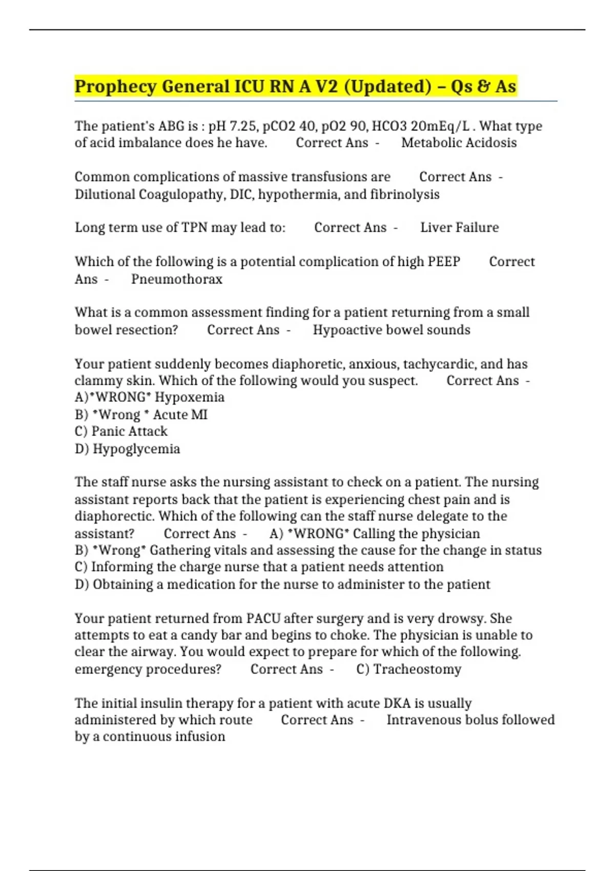 Prophecy General ICU RN A V2 (Updated) – Qs & As