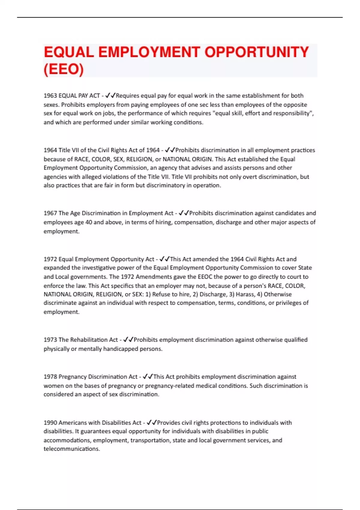 EQUAL EMPLOYMENT OPPORTUNITY (EEO) QUESTIONS WITH 100 % CORRECT ANSWERS | VERIFIED