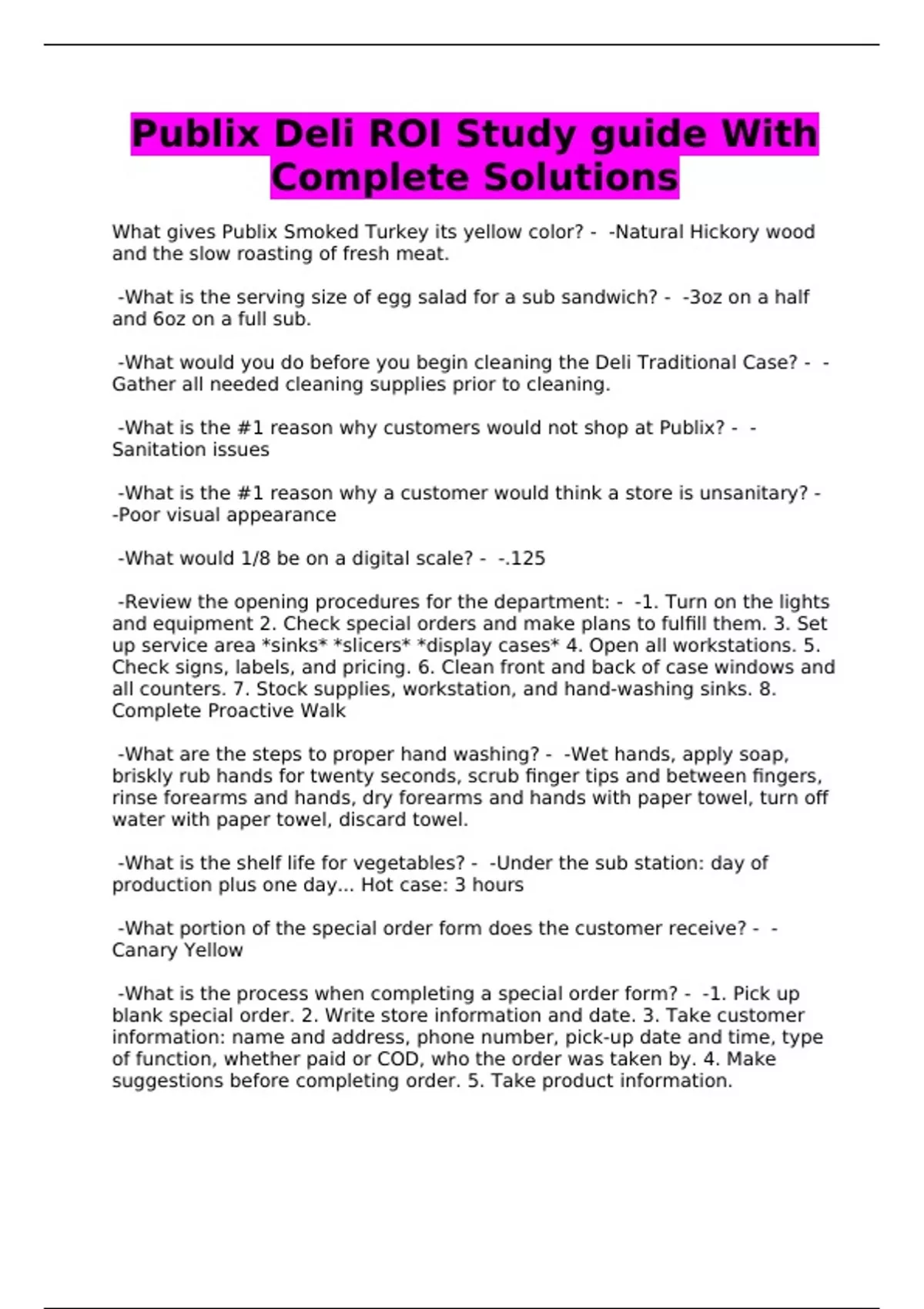 publix deli roi study guide with complete solution