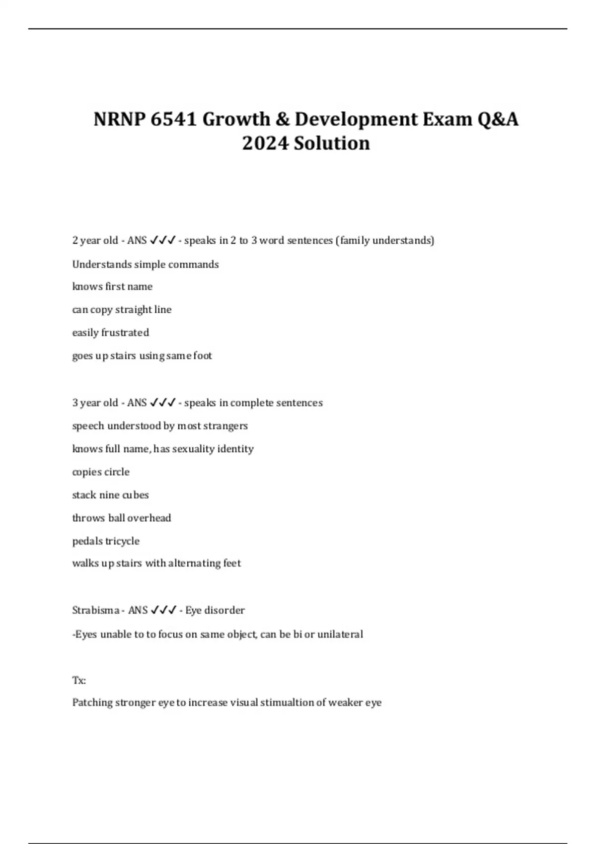 NRNP 6541 Growth & Development Exam Q&A 2024 Solution