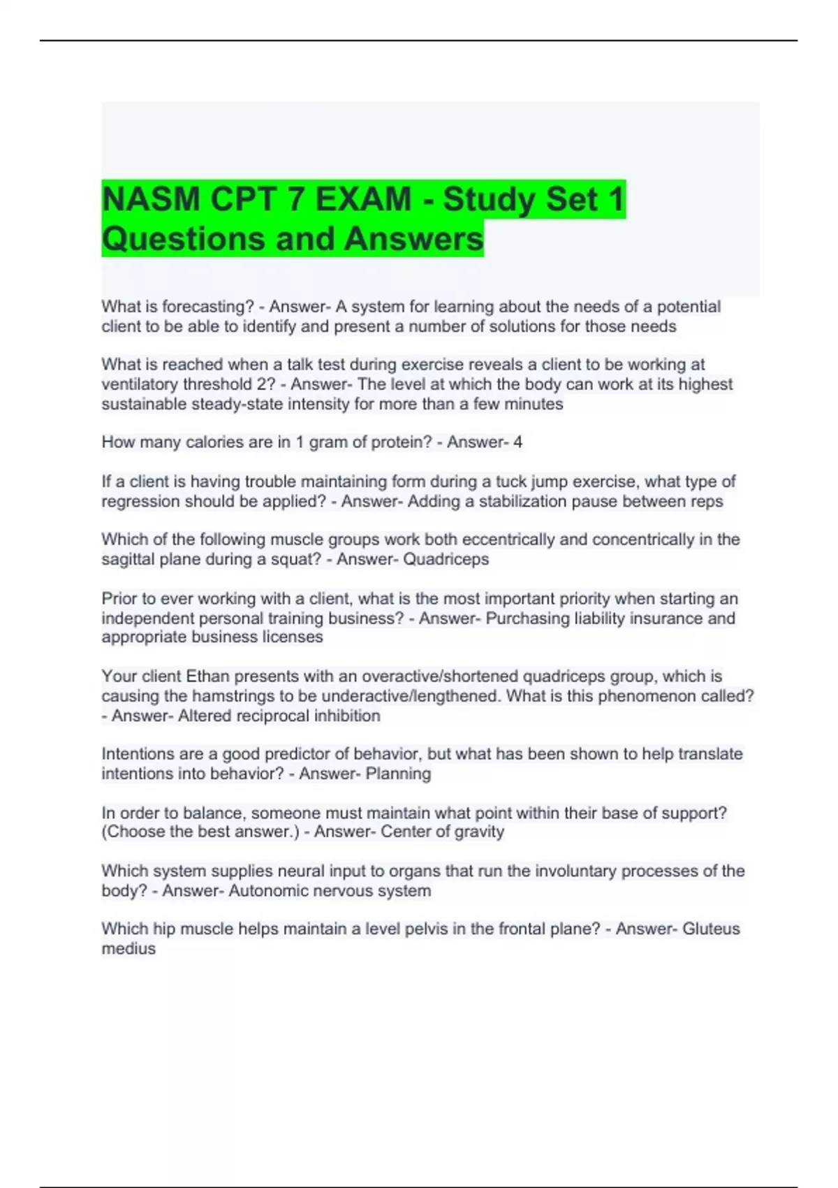 NASM CPT 7 EXAM - Study Set 1 Questions and Answers 2024