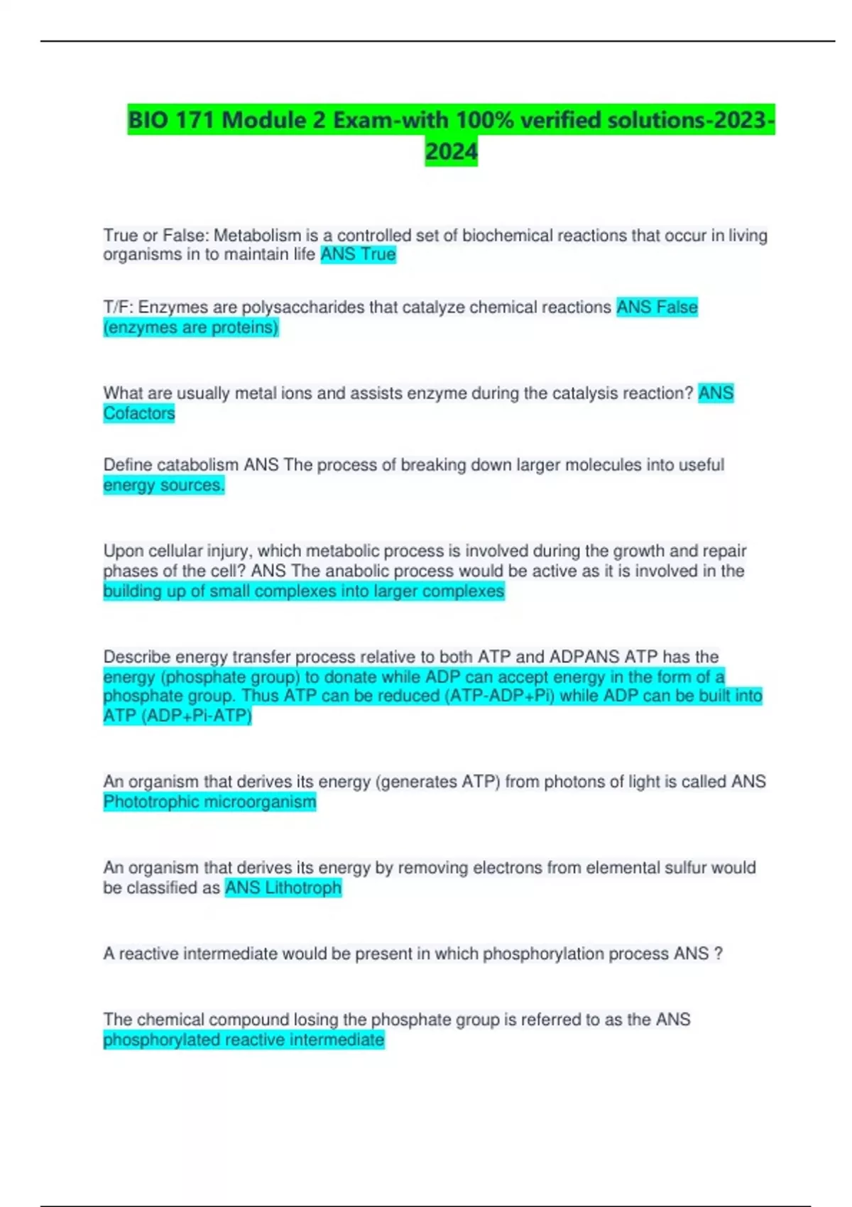 BIO 171 Module 2 Exam-with 100% verified solutions-