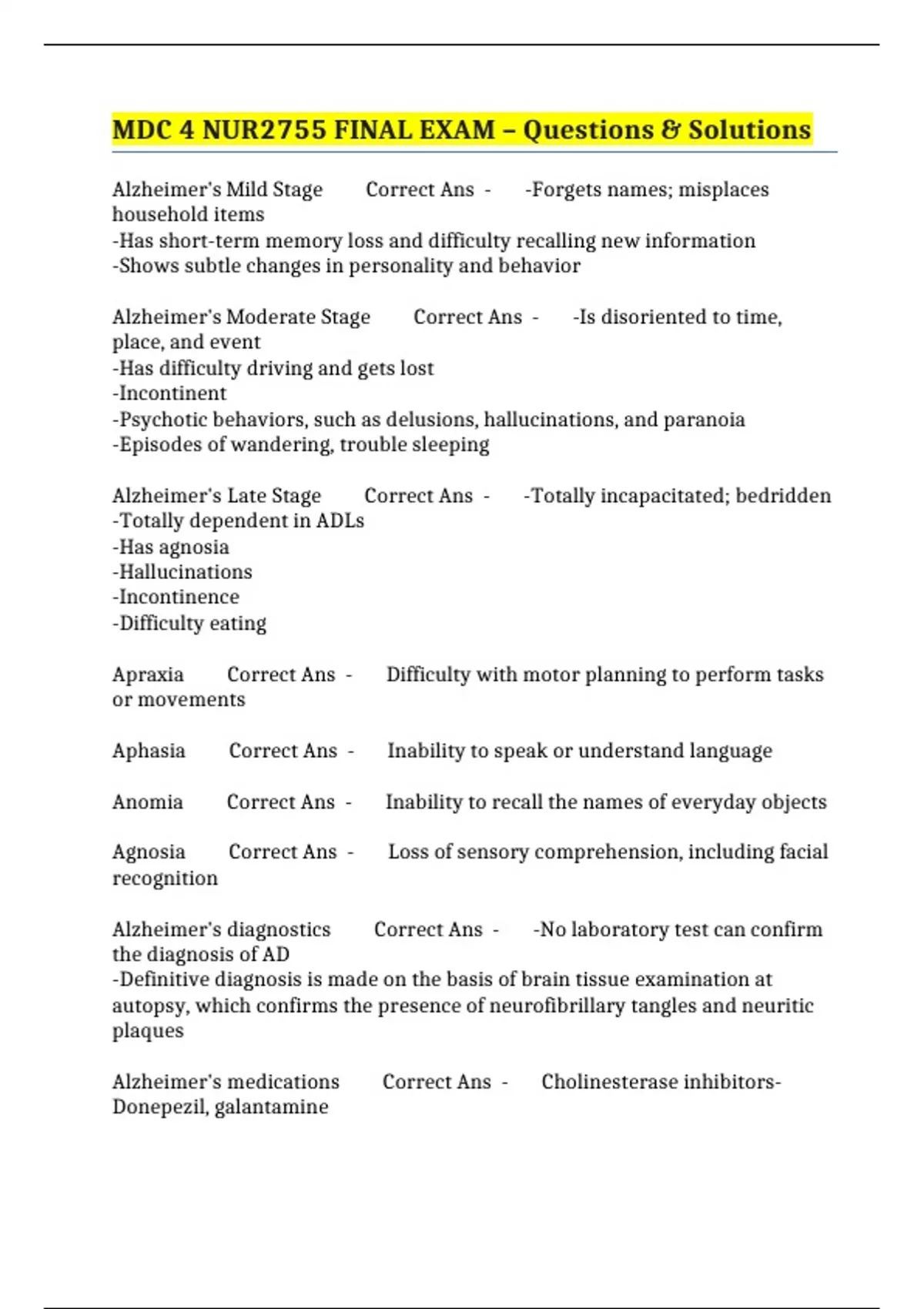 MDC 4 NUR2755 FINAL EXAM – Questions & Solutions