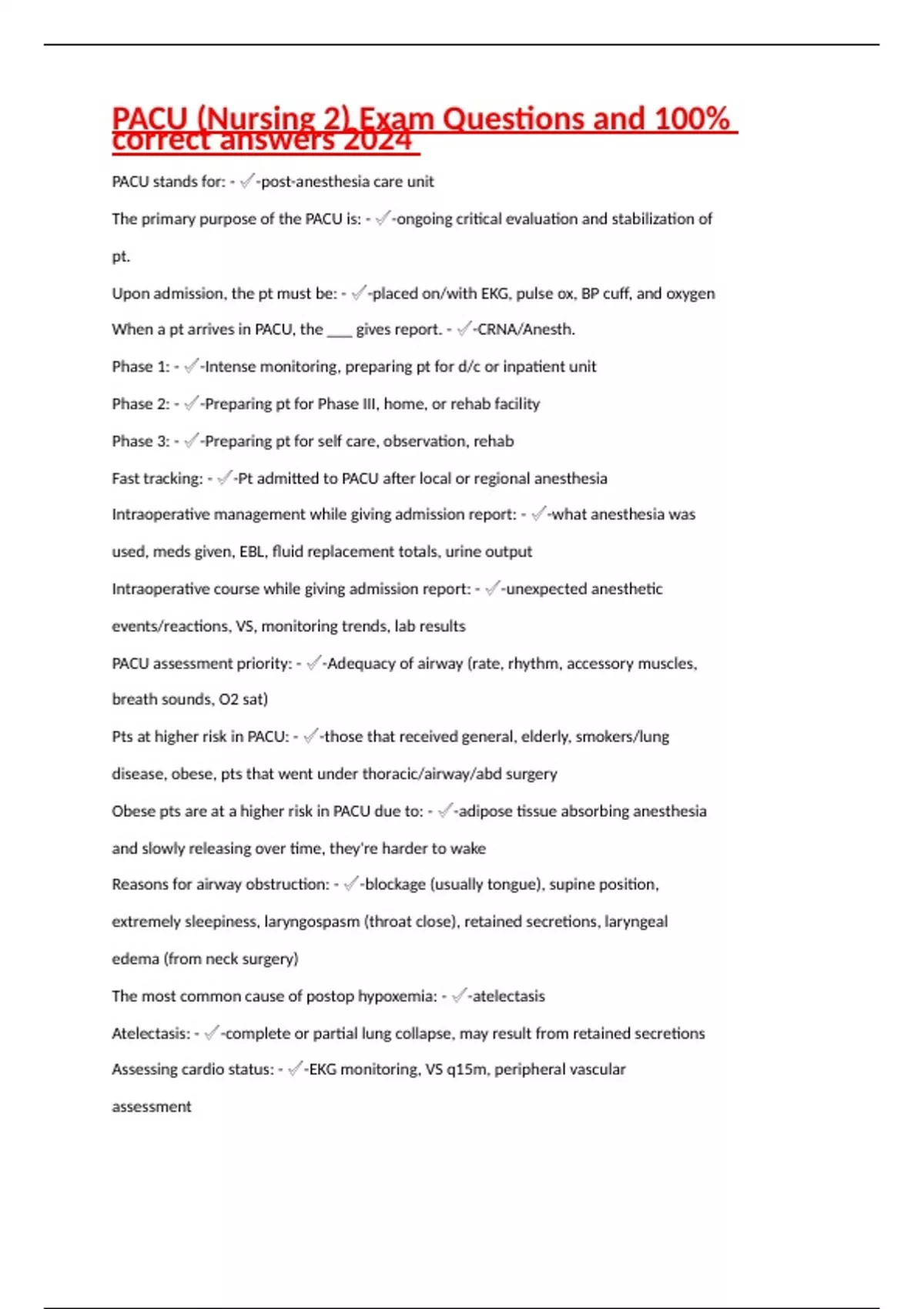 PACU (Nursing 2) Exam Questions and 100% correct answers 2024