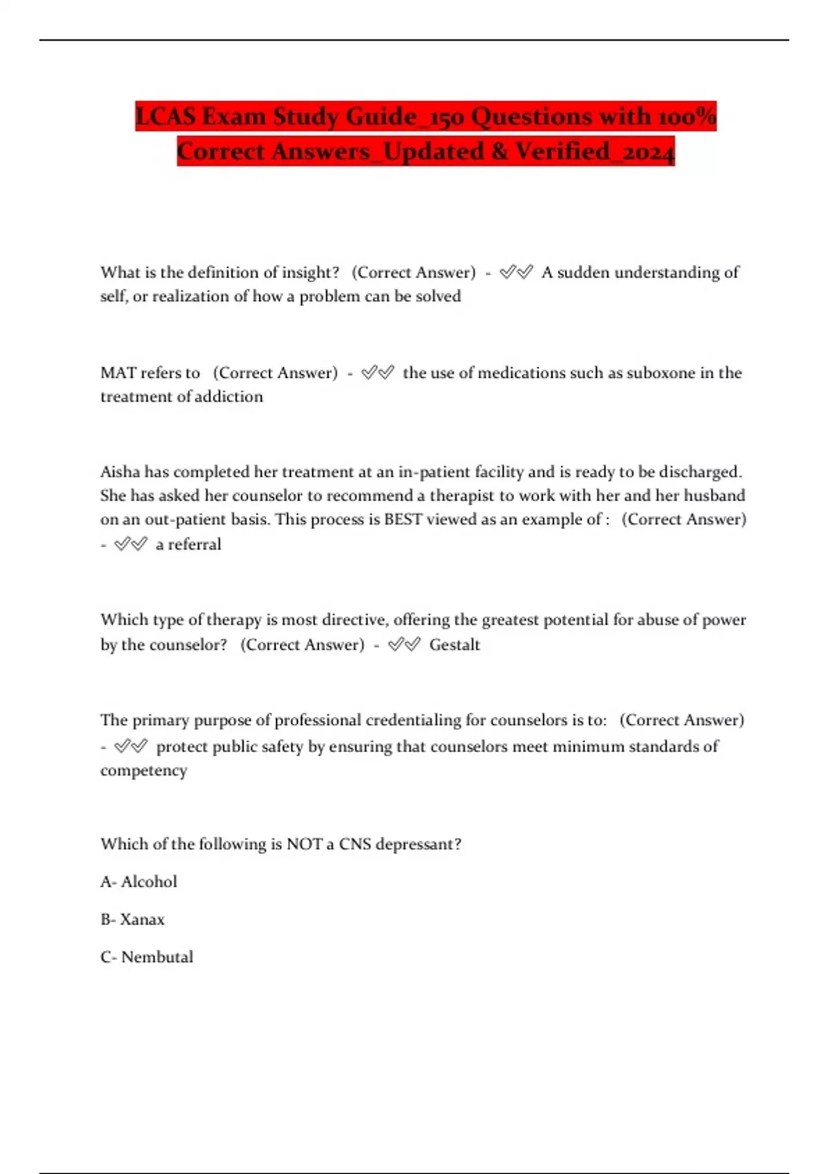 LCAS Exam Study Guide_150 Questions with 100% Correct Answers_Updated & Verified_2024