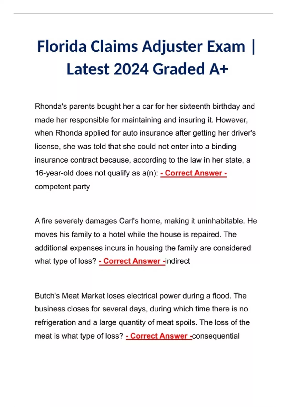 florida claims adjuster exam latest 2024 graded
