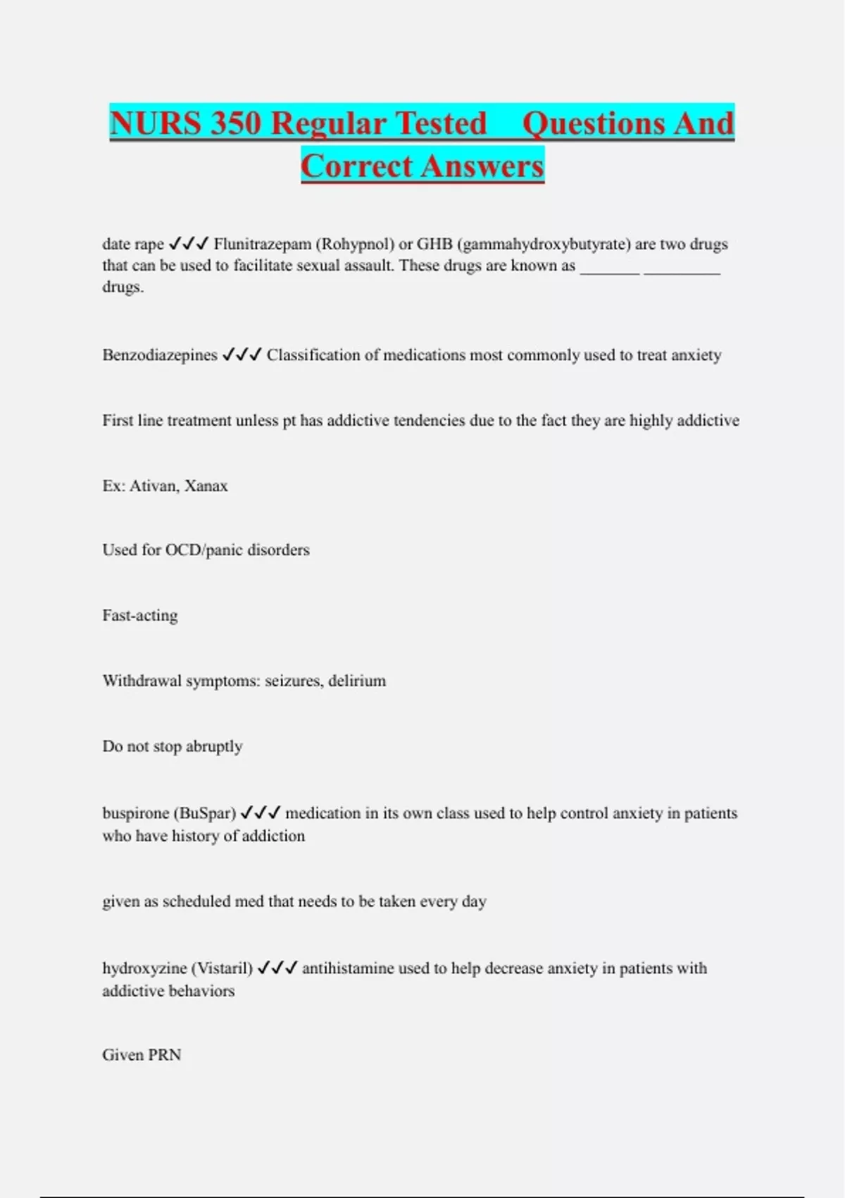 date rape Flunitrazepam (Rohypnol) or GHB (gammahydroxybutyrate) are two drugs that can be used to facilitate sexual assault. These drugs are known as _______ _________ drugs. Benzodiazepines Classification of medications most commonly used to treat anxiety First line treatment unless pt has addictive tendencies due to the fact they are highly addictive Ex: Ativan, Xanax Used for OCD/panic disorders Fast-acting Withdrawal symptoms: seizures, delirium