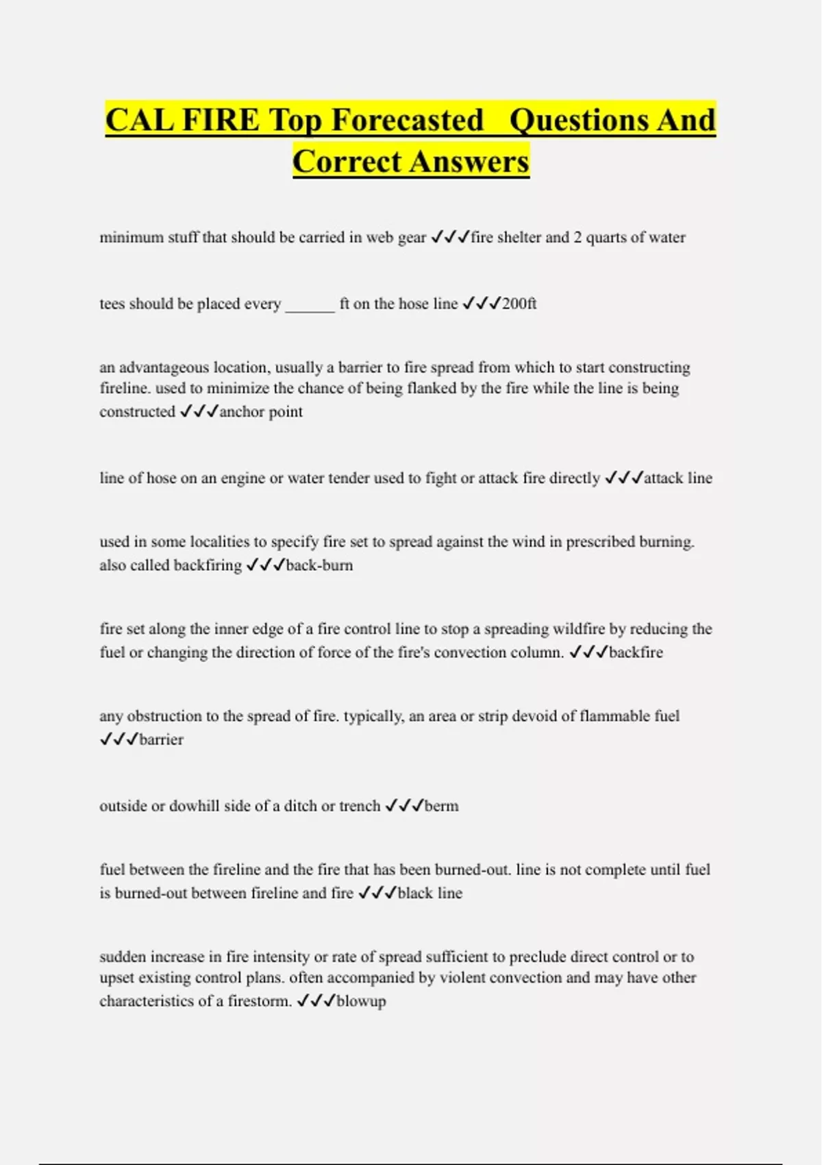 CAL FIRE Top Forecasted Questions And Correct Answers