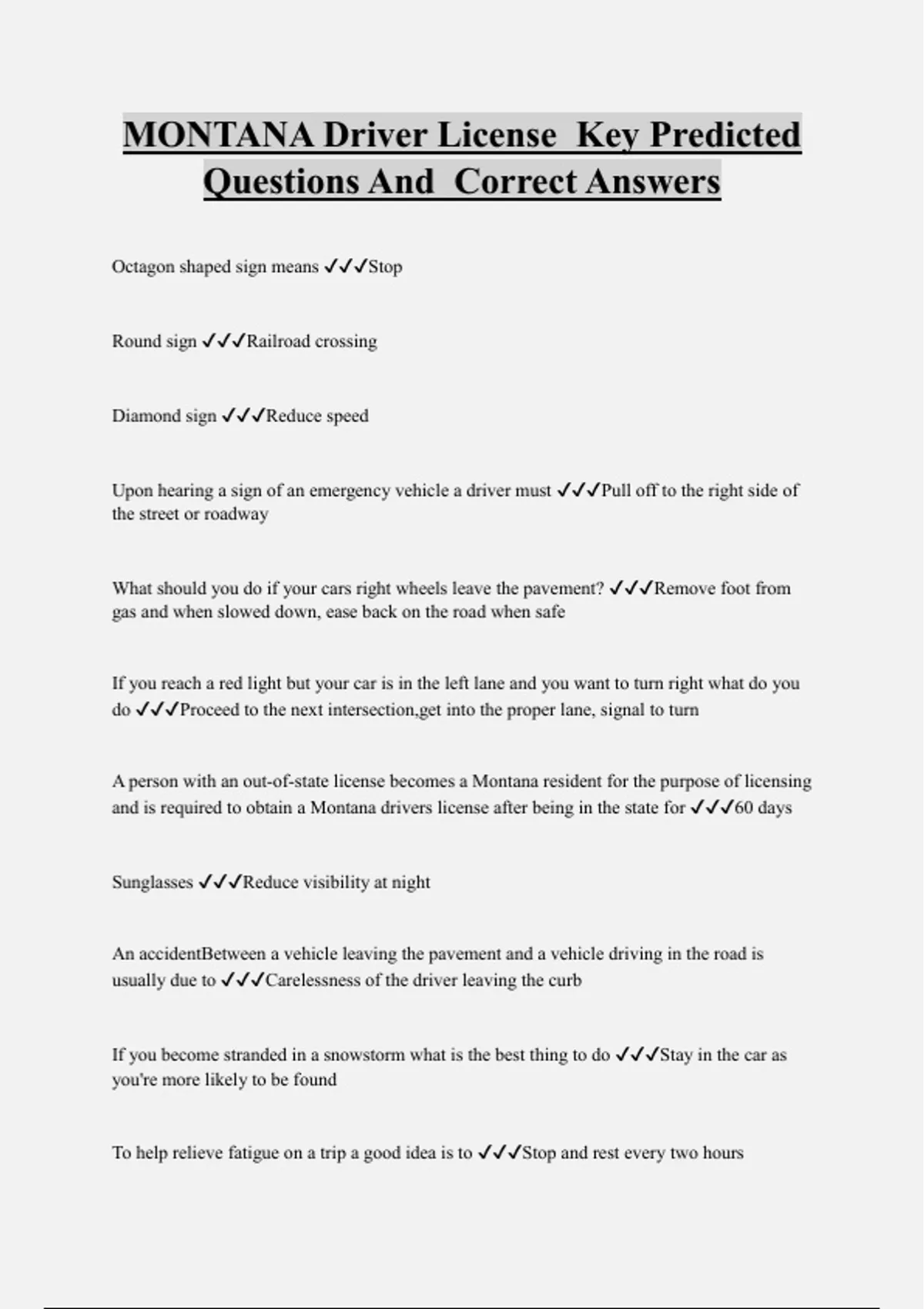 MONTANA Driver License Key Predicted Questions And Correct Answers