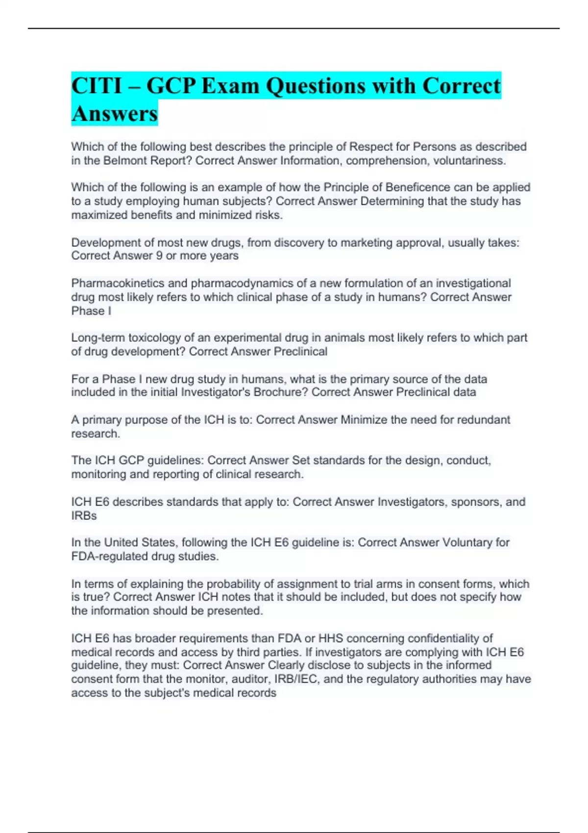 CITI – GCP Exam Questions with Correct Answers