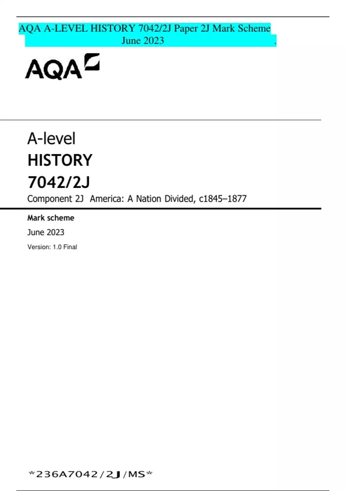AQA A-LEVEL HISTORY 7042/2J Paper 2J Mark Scheme June 2023
