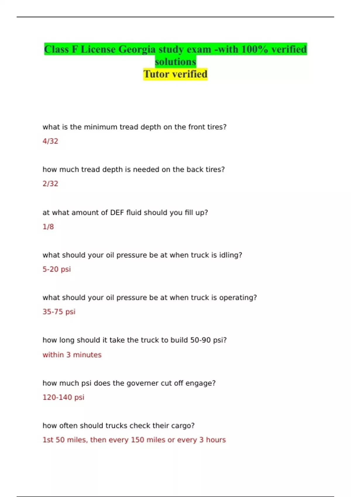 Class F License Georgia study exam -with 100% verified solutions Tutor verified