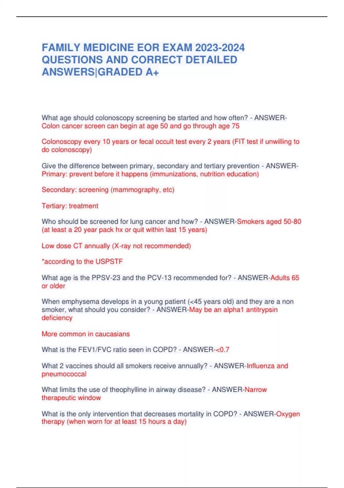 FAMILY MEDICINE EOR EXAM QUESTIONS AND CORRECT DETAILED ANSWERS|GRADED A+