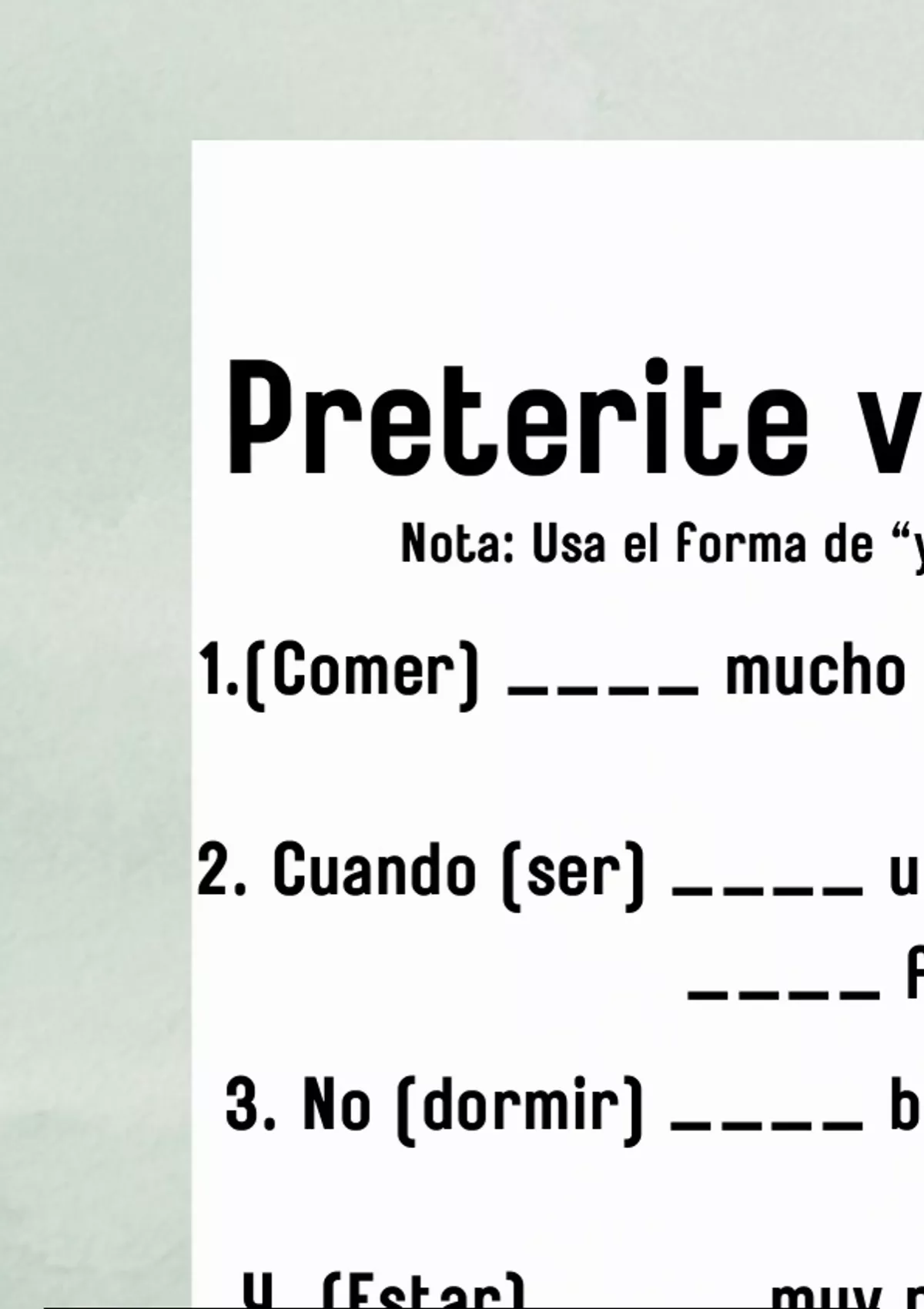 Preterite vs Imperfecto Worksheet Spanish Grammar Past Tense Practice Fill in the Blanks Practice Test