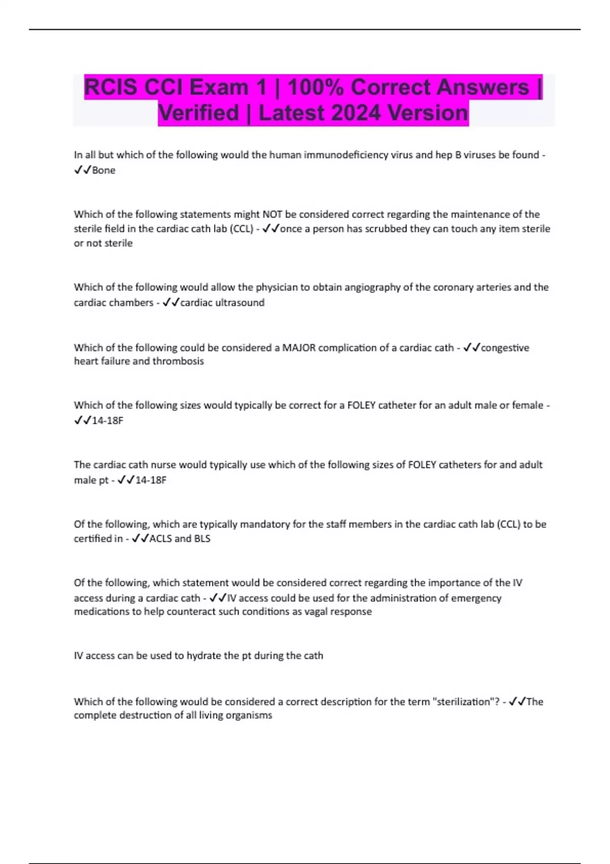 rcis cci exam 1 100 correct answers verified