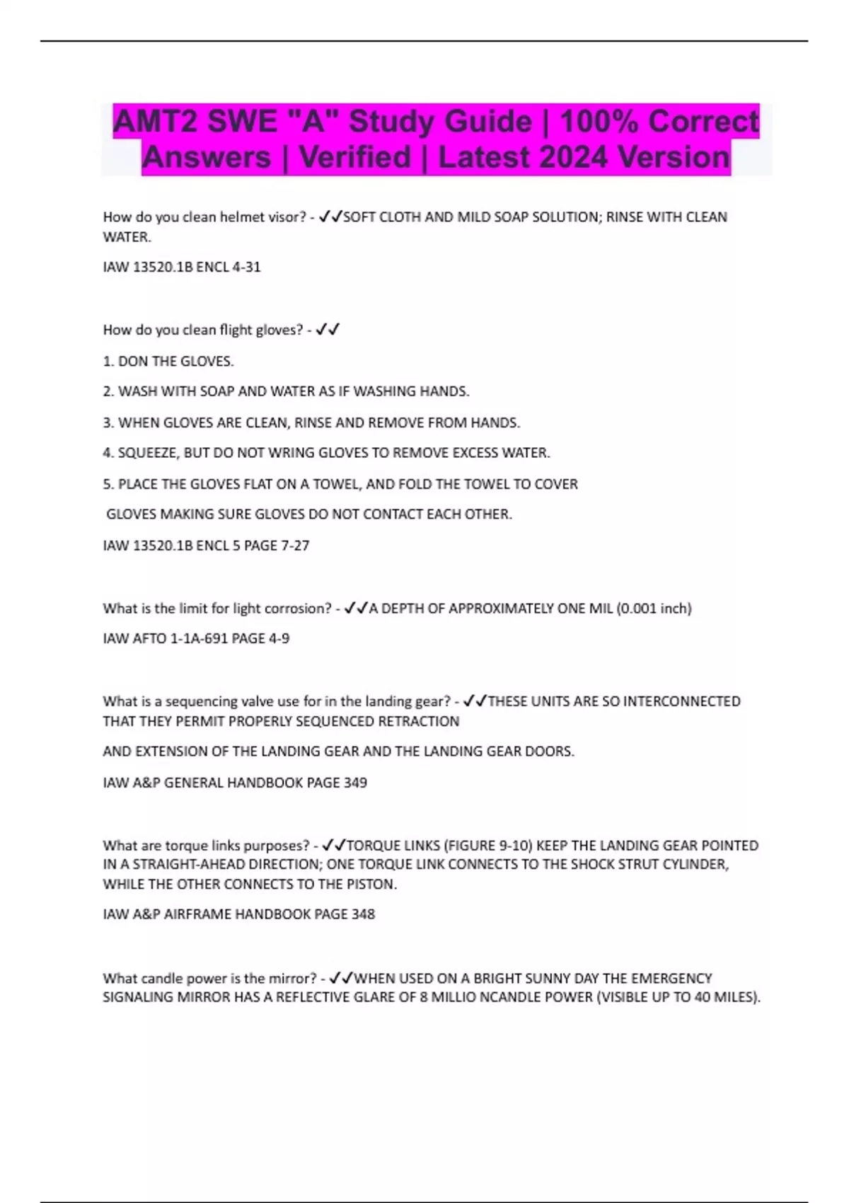 AMT2 SWE "A" Study Guide | 100% Correct Answers | Verified | Latest 2024 Version