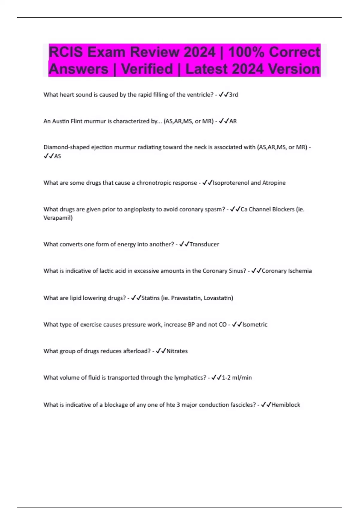 RCIS Exam Review 2024 | 100% Correct Answers | Verified | Latest 2024 Version