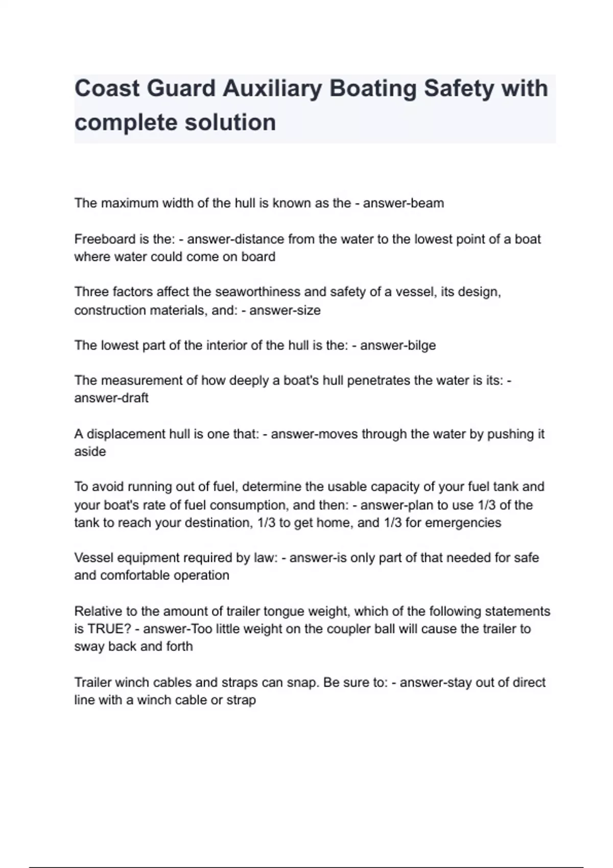 Coast Guard Auxiliary Boating Safety with complete solution