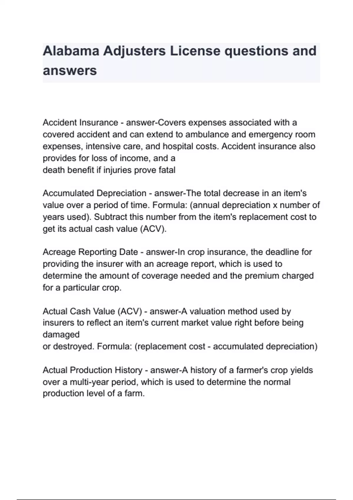 Alabama Adjusters License queswers