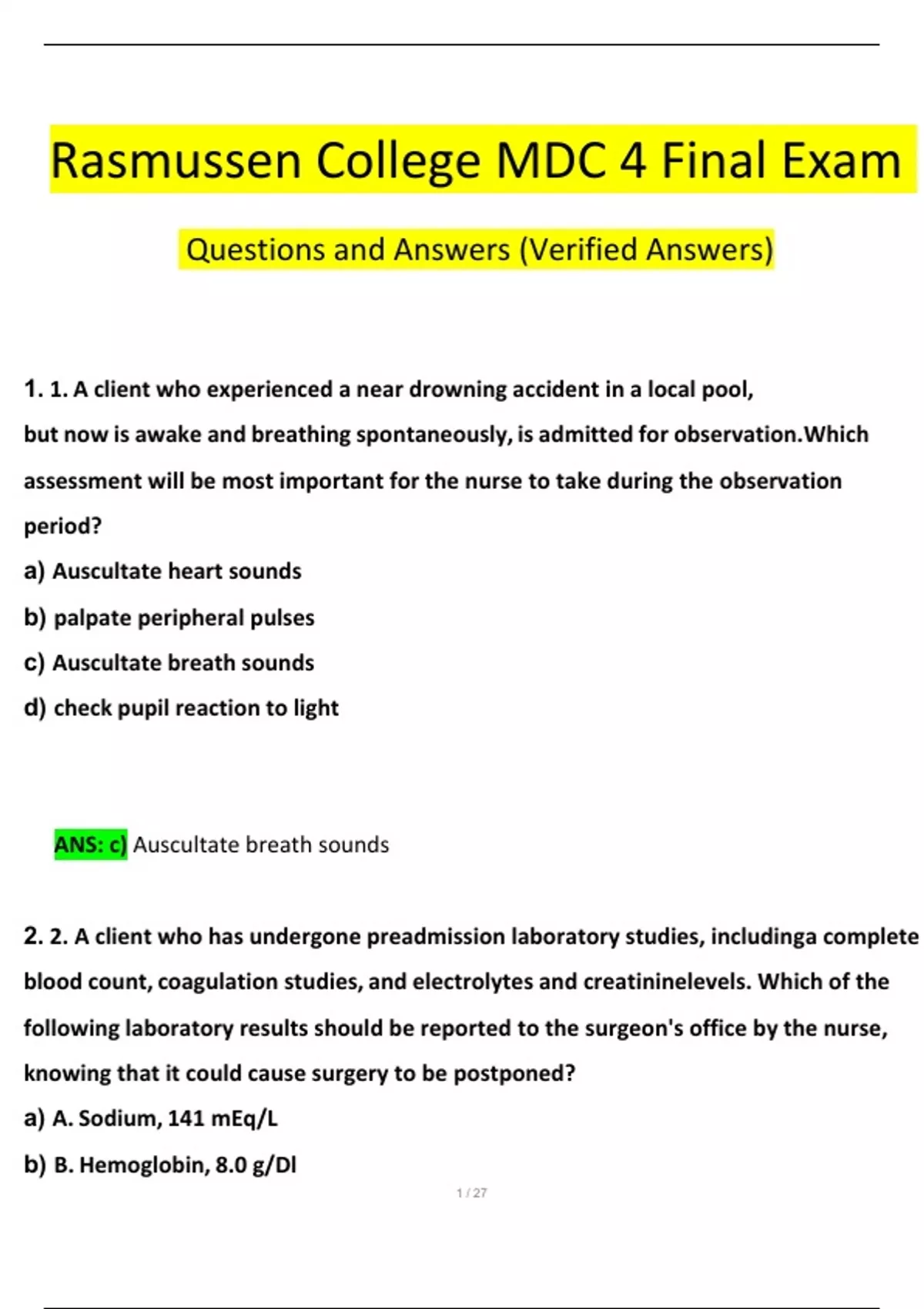 Rasmussen College MDC 4 Final Exam Questions and Answers 2024 / 2025 | 100% Verified Answers