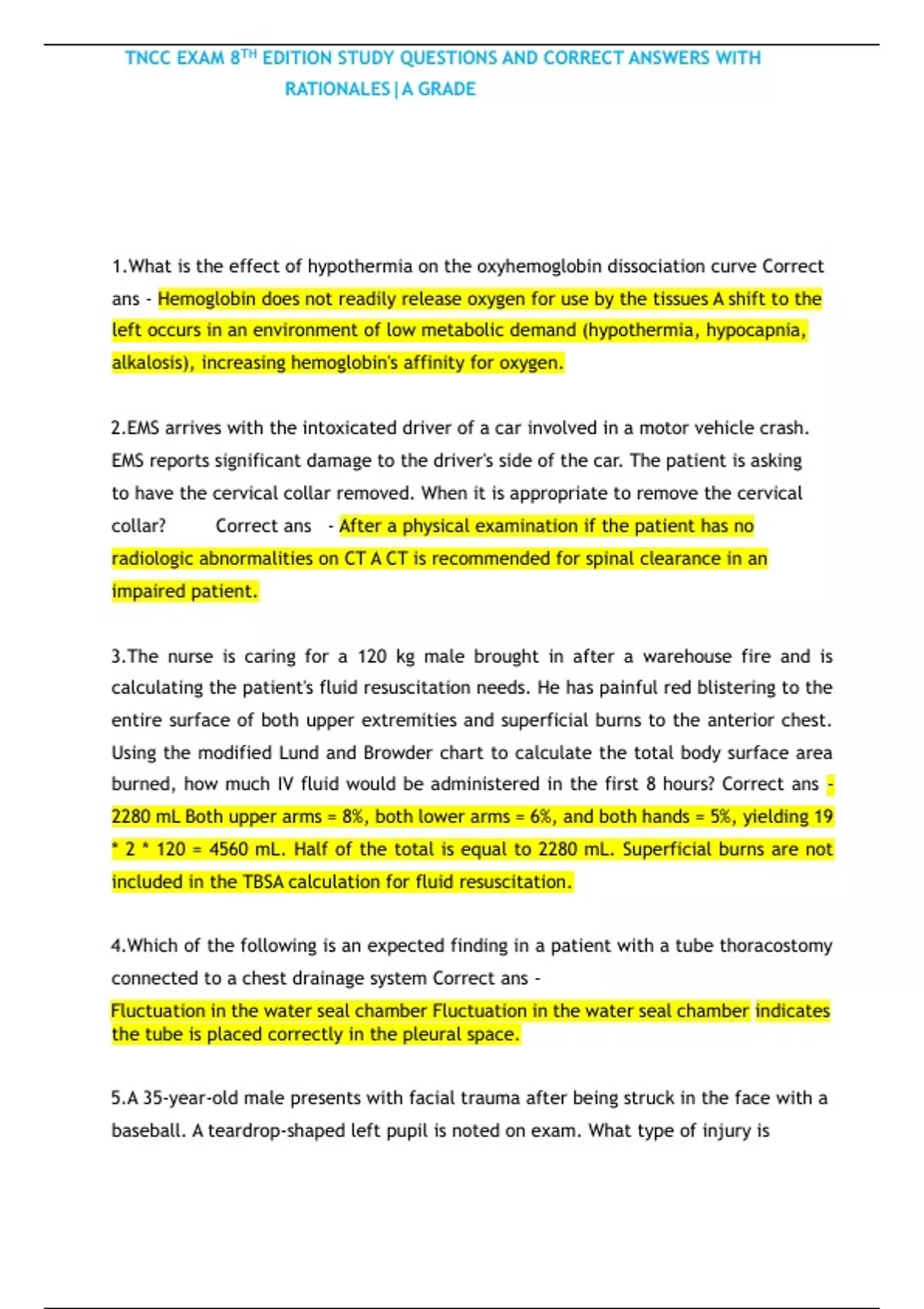 TNCC FINAL EXAM TEST 2023 QUESTIONS AND ANSWERS RATED A+