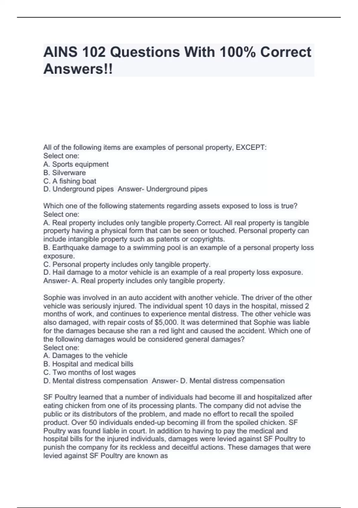 AINS 102 Questions With 100% Correct Answers!!