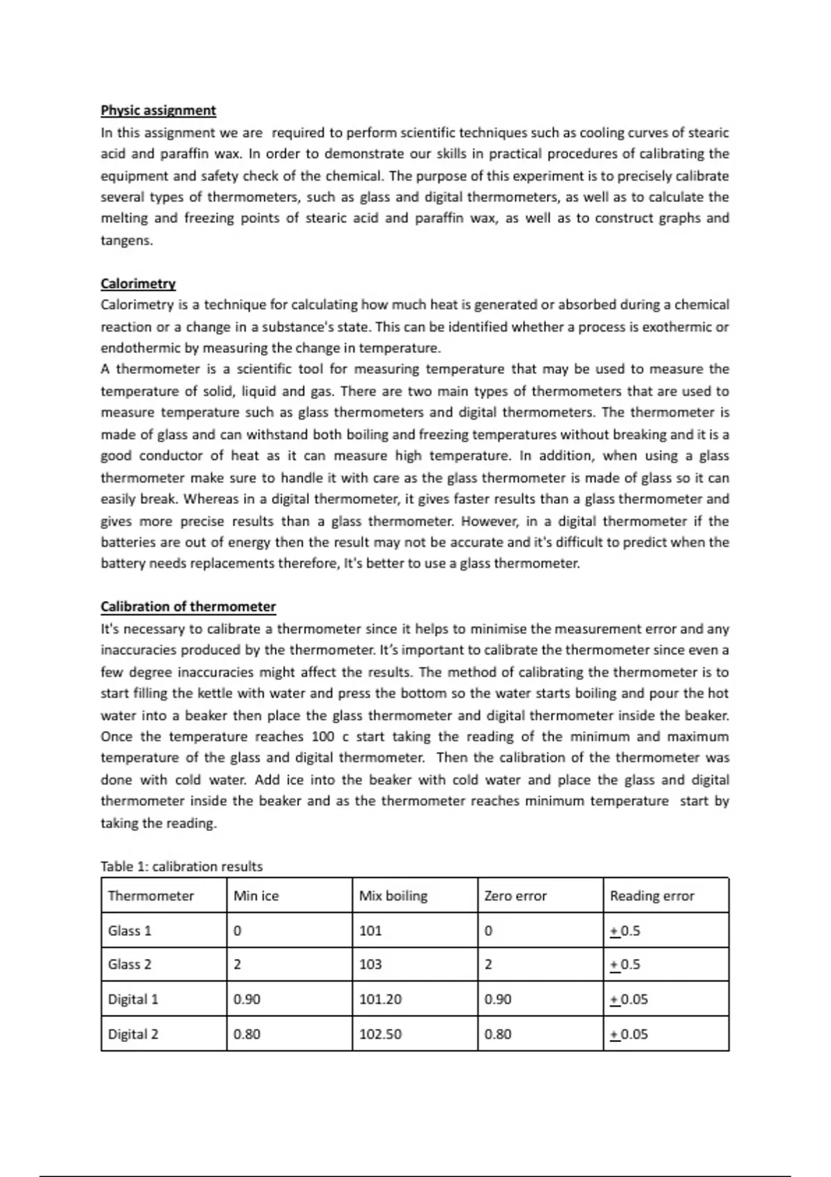 acid and paraffin wax. In order to demonstrate our skills in practical procedures of calibrating the