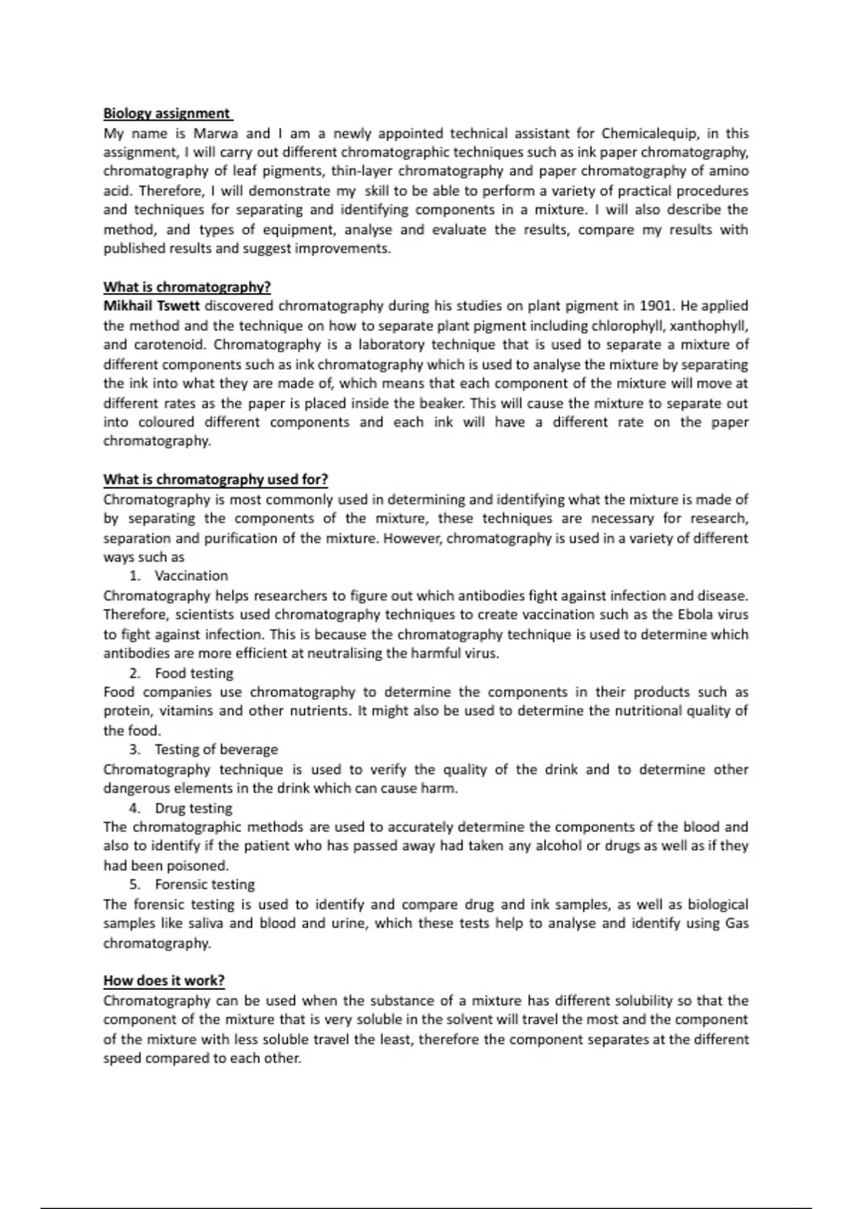 assignment, I will carry out different chromatographic techniques such as ink paper chromatography,