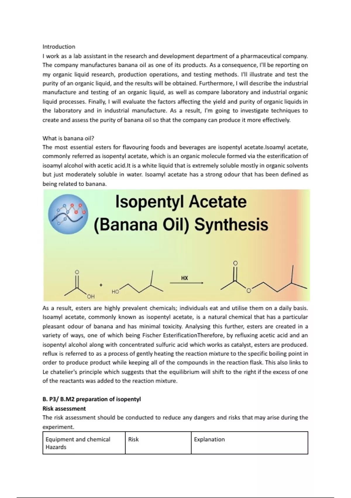 pleasant odour of banana and has minimal toxicity. Analysing this further, esters are created in a