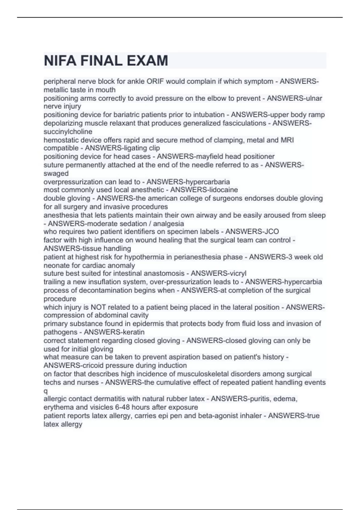 Exam of 23 pages for the course NIFA nursing at NIFA nursing (NIFA FINAL EXAM)