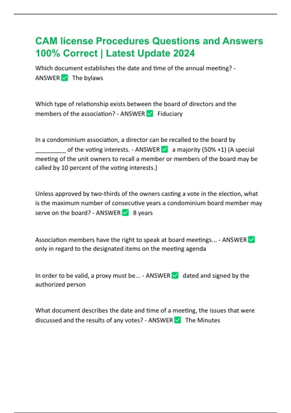CAM license Procedures Questions and Answers 100% Correct | Latest Update 2024