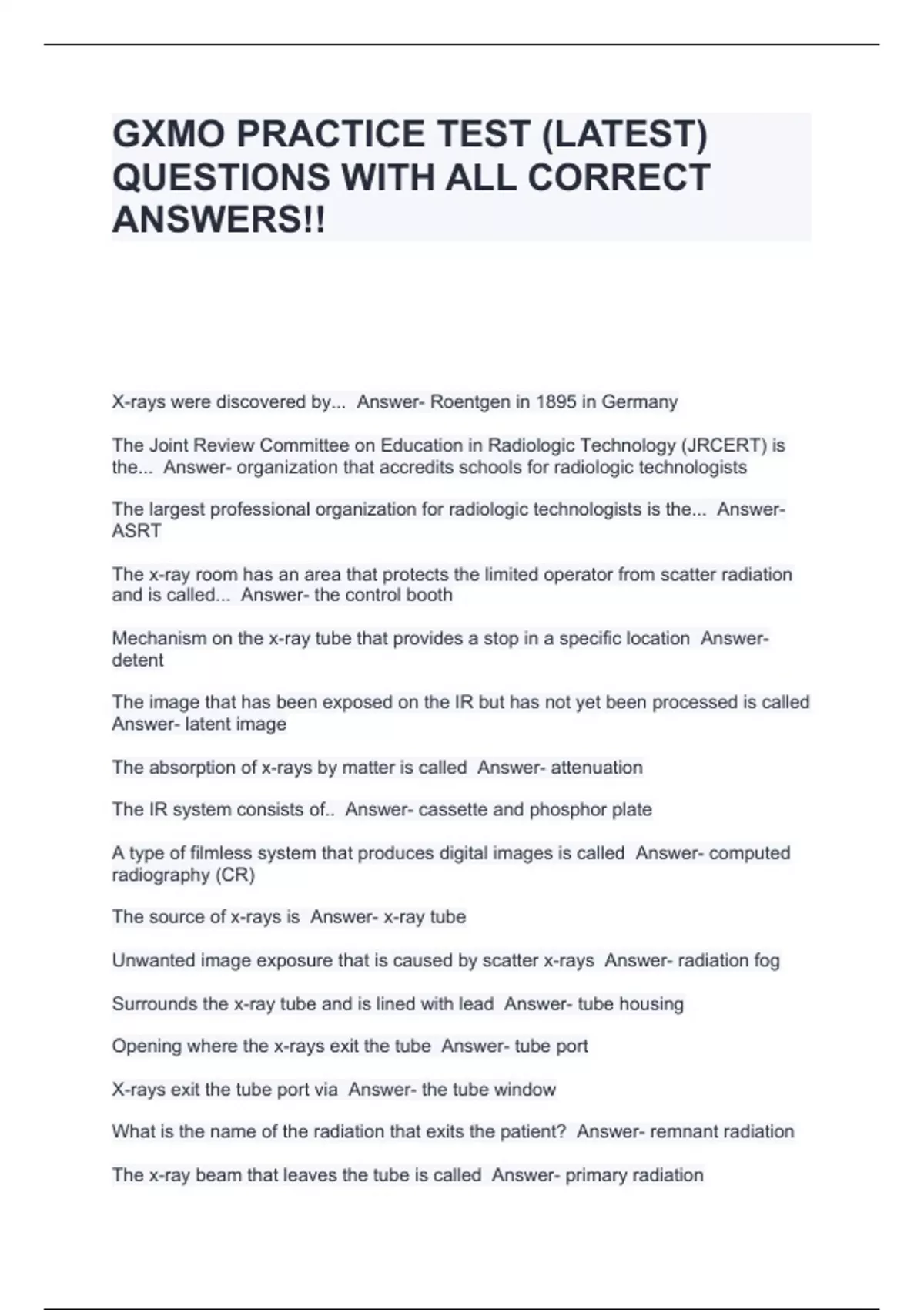 gxmo practice test latest questions with all cor