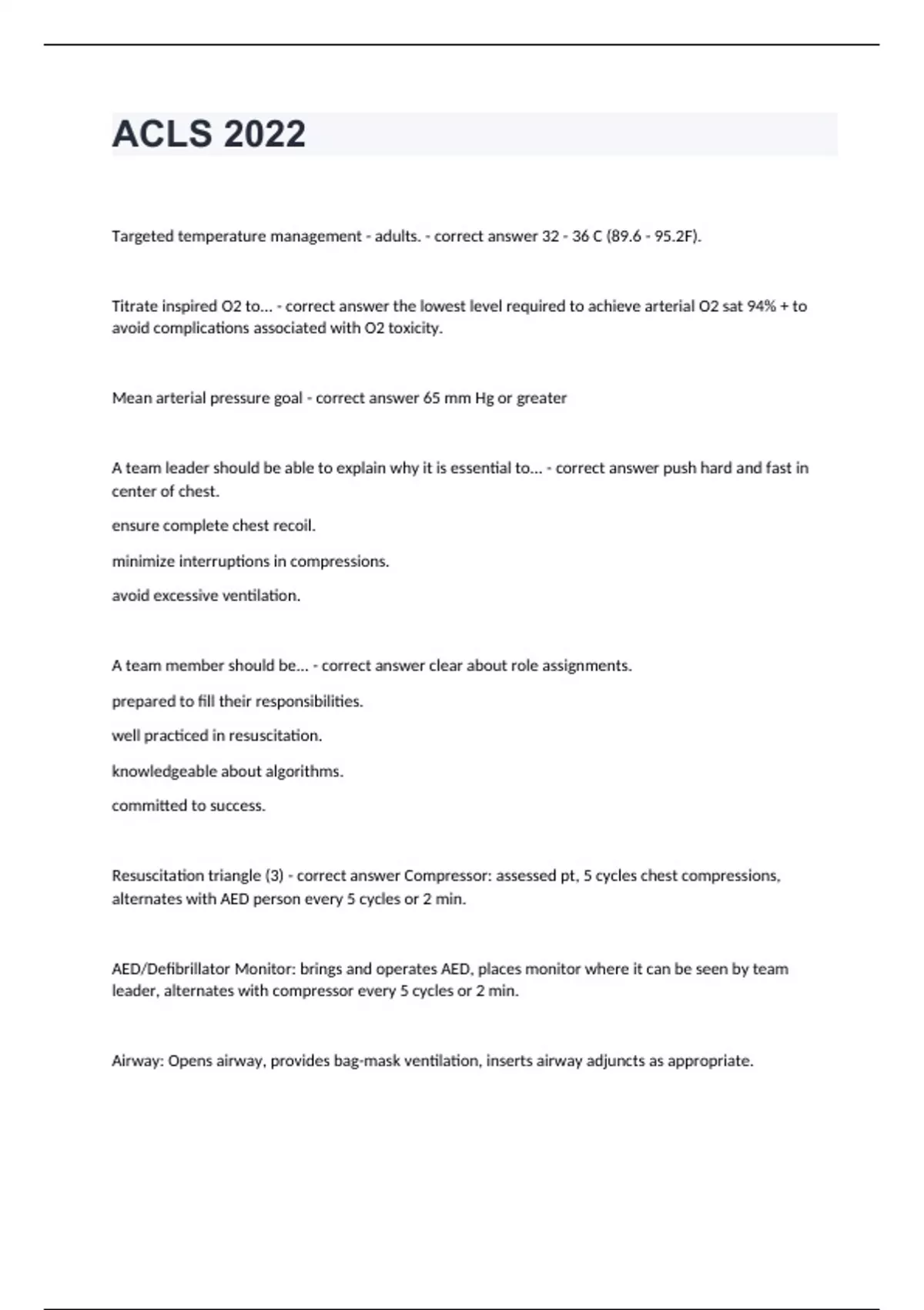ACLS 2022 Practice Exam Updated Question And Correct Answers 2024.