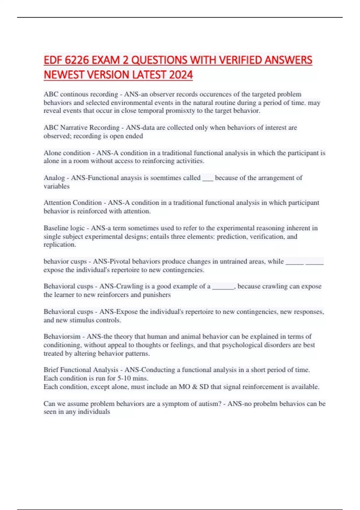 EDF 6226 EXAM 2 QUESTIONS WITH VERIFIED ANSWERS NEWEST VERSION LATEST 2024