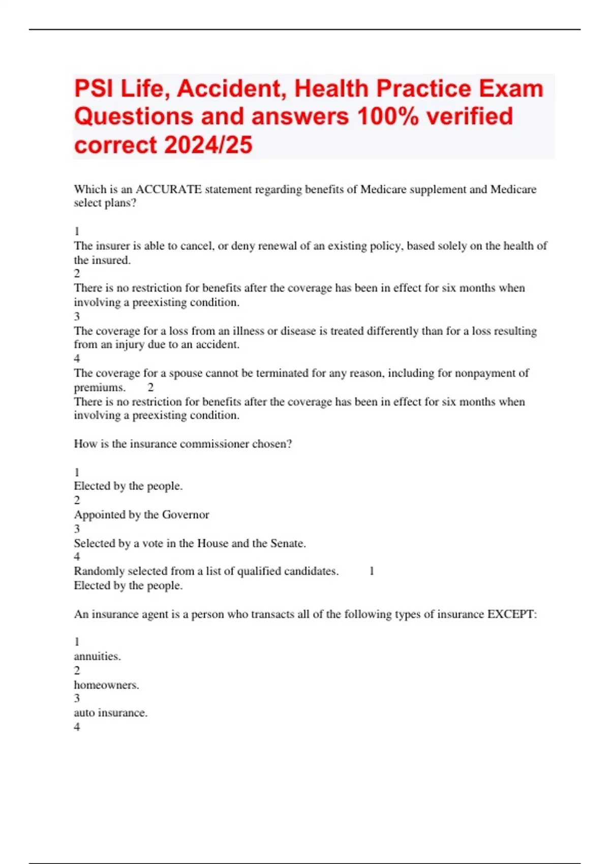 PSI Life, Accident, Health Practice Exam Questions and answers 100% verified correct 2024/25