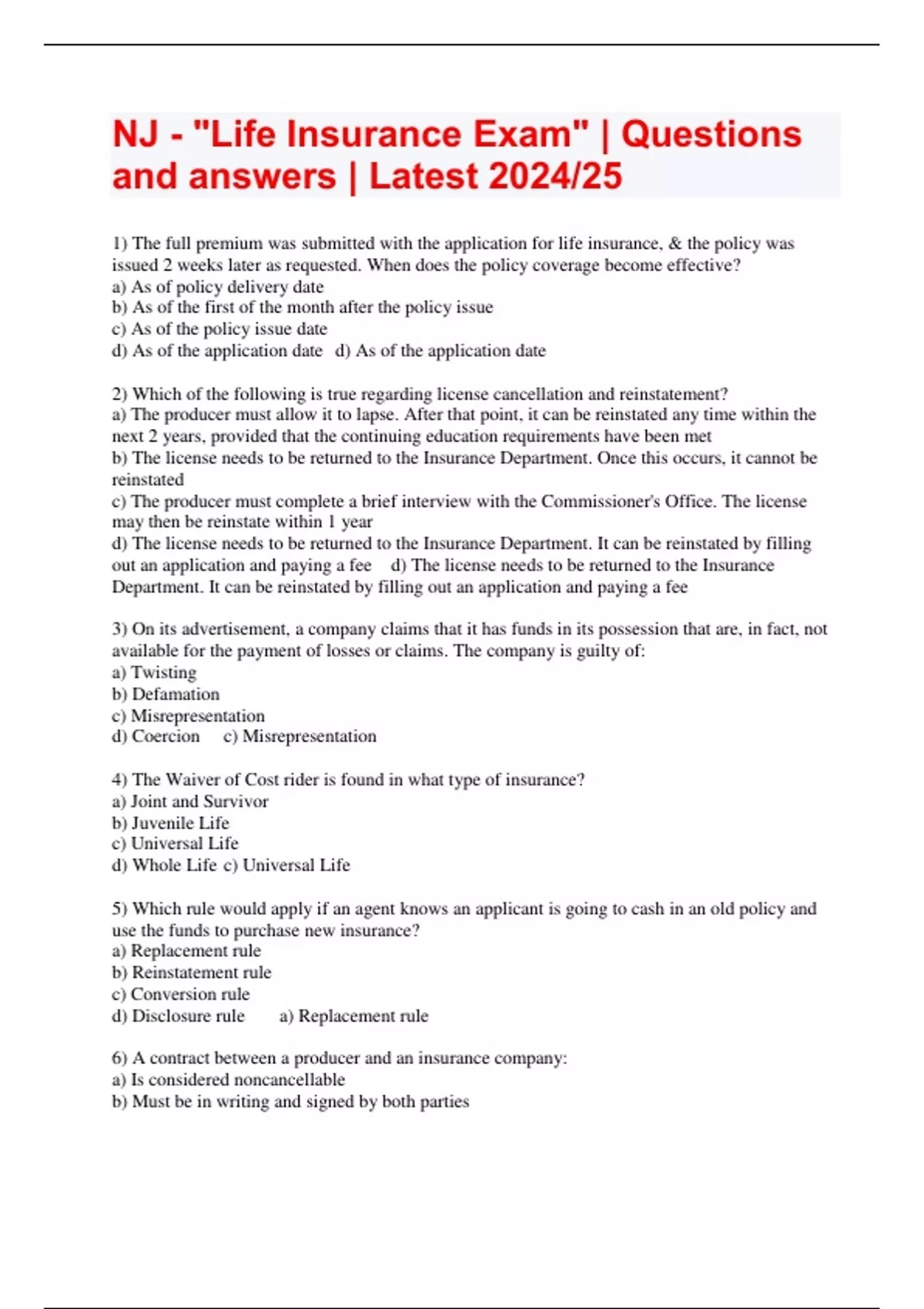 NJ - "Life Insurance Exam" | Questions and answers | Latest 2024/25