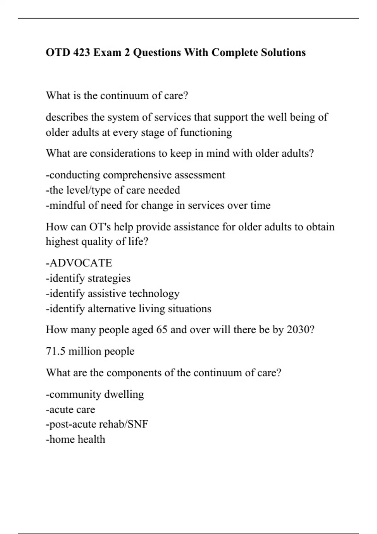 OTD 423 Exam 2 Questions With Complete Solutions