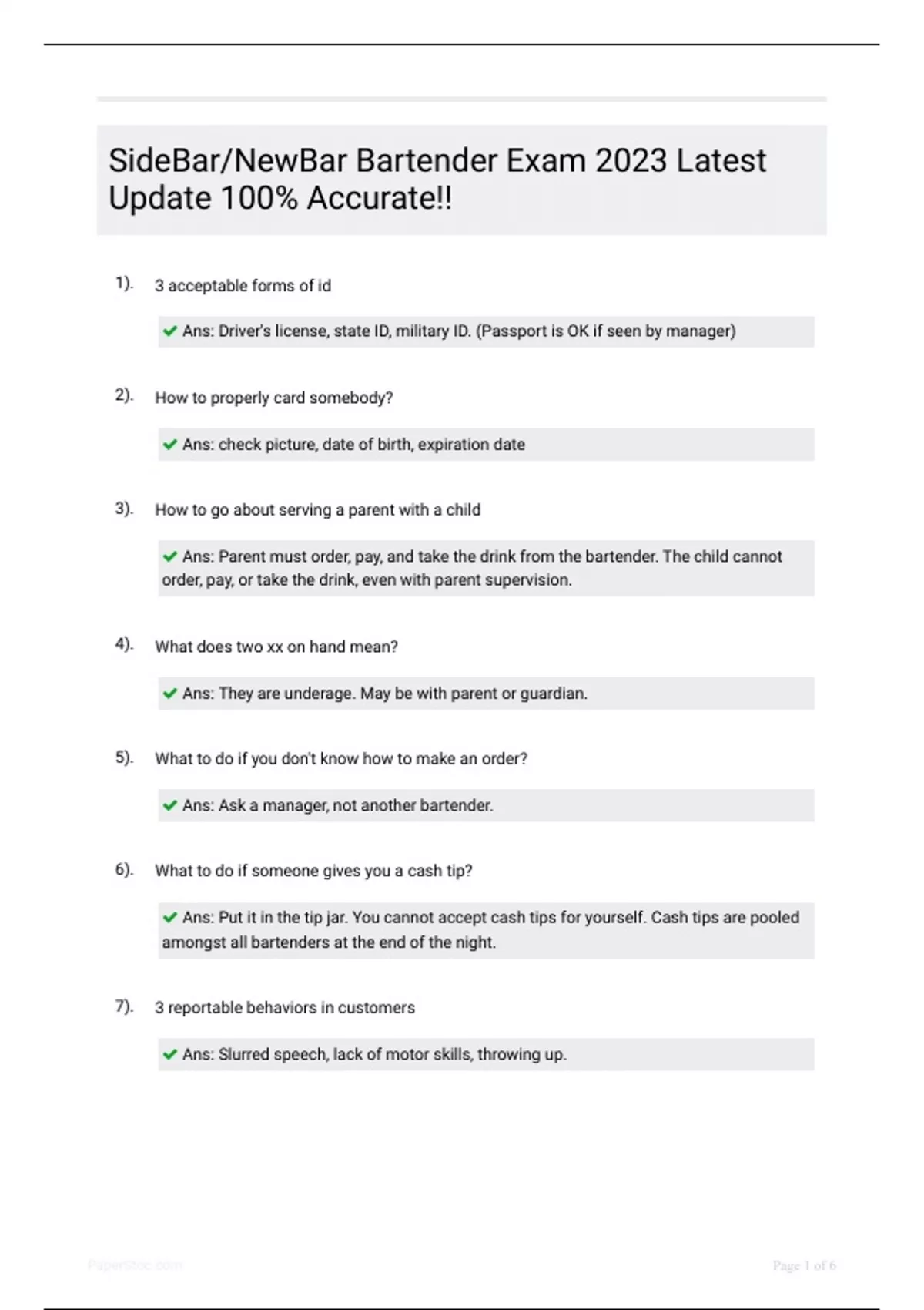 Ans: Driver's license, state ID, military ID. (Passport is OK if seen by manager)