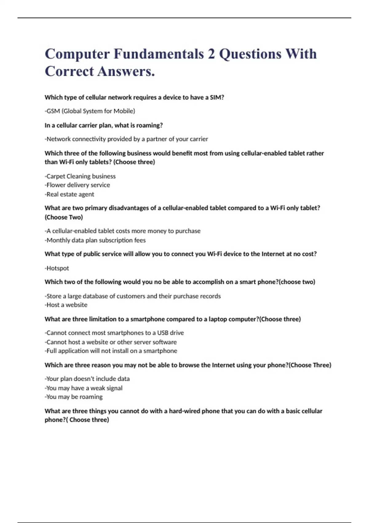 Computer Fundamentals 2 Questions With Correct Answers.