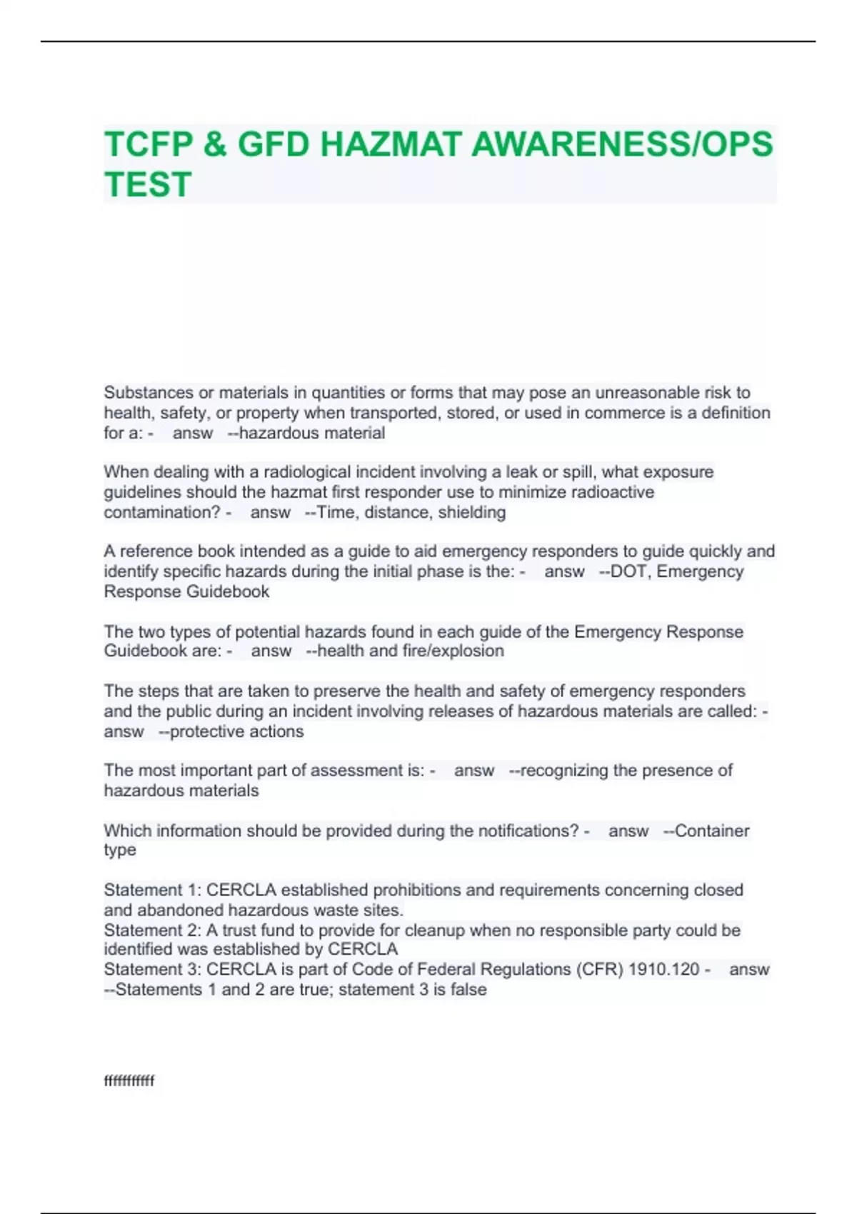 TCFP & GFD HAZMAT AWARENESS/OPS TEST