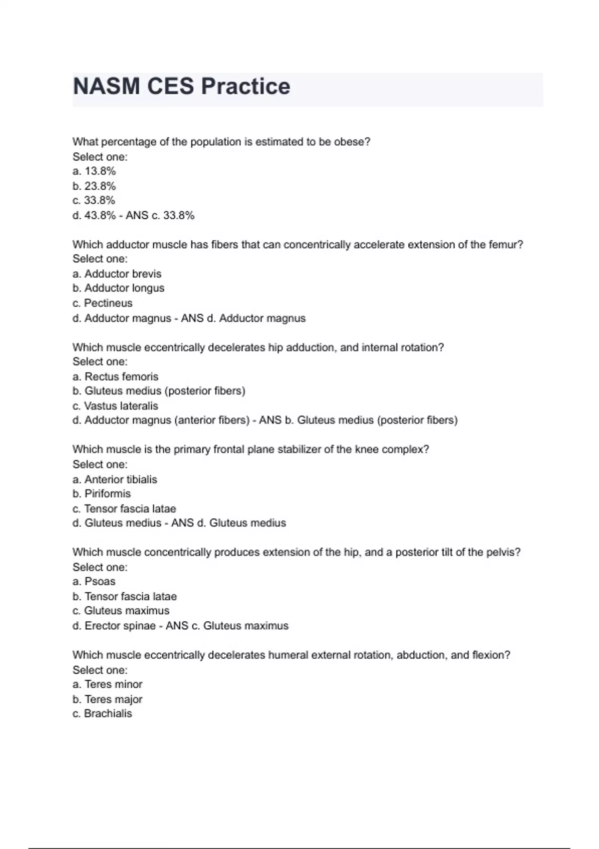 NASM CES Practice Exam 2024/2025 Questions With Verified Solutions.