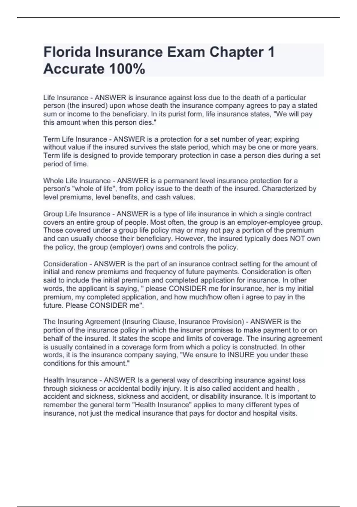 Florida Insurance Exam Chapter 1 Accurate 100%