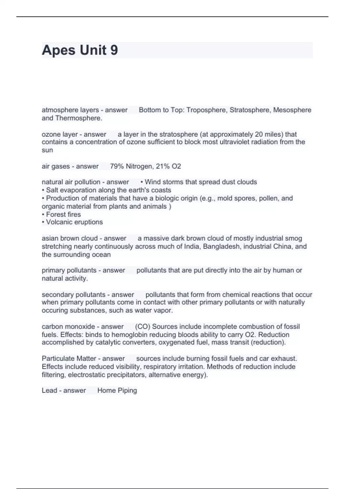 Apes Unit 9 Questions and Answers 2024